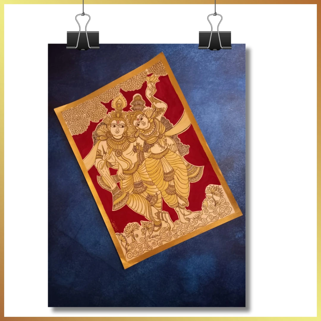 “Radhe Krishna” by Swati Paul is a soulful folk painting that portrays the divine love and timeless bond of Radha and Krishna with graceful artistry.